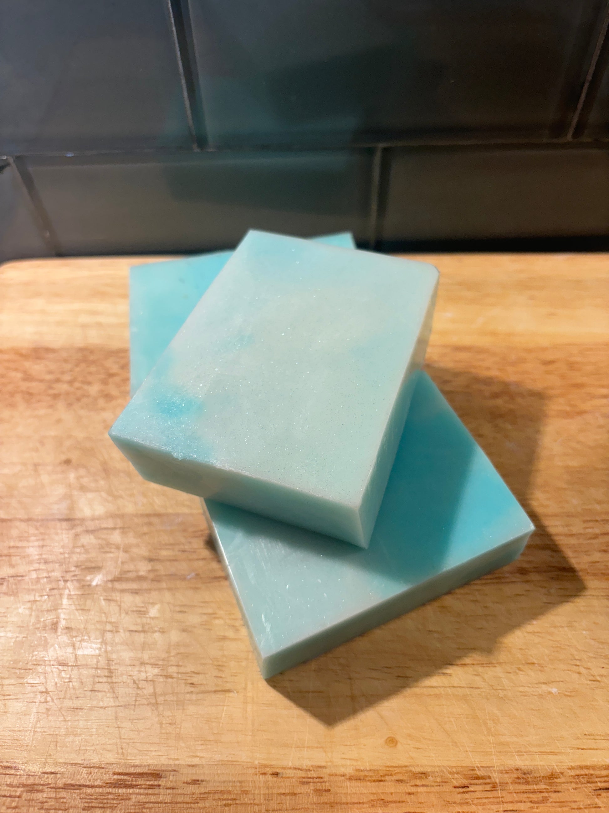 Creamy detergent free goat milk soap in a silver sparkle fragrance.